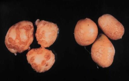 - Gaat u aardappelen telen, kies dan voor een vroeg ras of voor een ras dat matig gevoelig is. Rassen zoals Hansa of Asterix zijn erg gevoelig en laten duidelijk knobbels zien.
